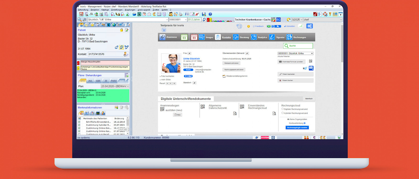 - Anamnesebögen werden in ivoris® importiert und können digital unterschrieben werden.