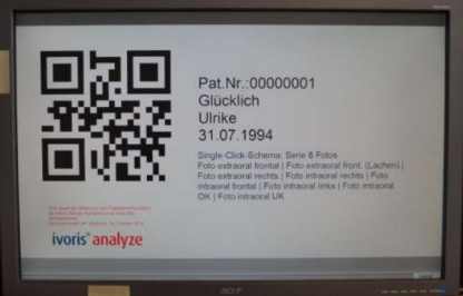 Die Zuordnung von Bildern zu Patienten bei der Fotodokumentation ist bisher ein manueller Vorgang. Eine Übergabe von Patientendaten über Schnittstellen, wie bei Röntgengeräten etabliert (z.B. VDDS), ist aufgrund der Vielzahl von Herstellern und ungeeigneten Formaten nicht möglich. Um dennoch einen automatisierten Import von Fotos unseren Kunden anbieten zu können, unterstützt ivoris® analyze die Patientenidentifikation mittels QR-Codes.